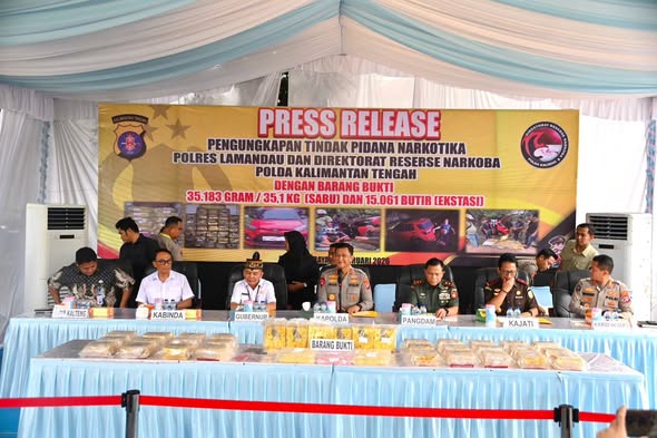 Gubernur Agustiar Sabran Hadiri Press Release Pengungkapan Tindak Pidana Narkotika di Polda Kalteng
