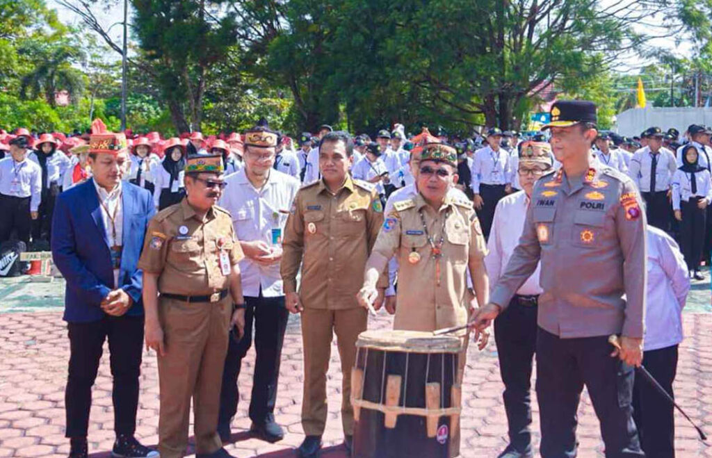 Gubernur Agustiar Sabran bersama sejumlah pejabat membuka secara simbolis PKKMB UPR 2025 melalui pemukulan Gendang Hai