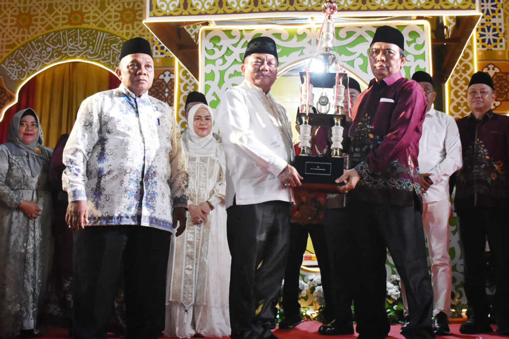 Bupati Kapuas H.M. Wiyatno, S.P., serahkan piala bergilir kepada panitia pelaksana pada kegiatan Musabaqah Tilawatil Qur’an dan Hadist (MTQH) ke-47 tingkat Kabupaten Kapuas tahun 2025. (foto:Ist)