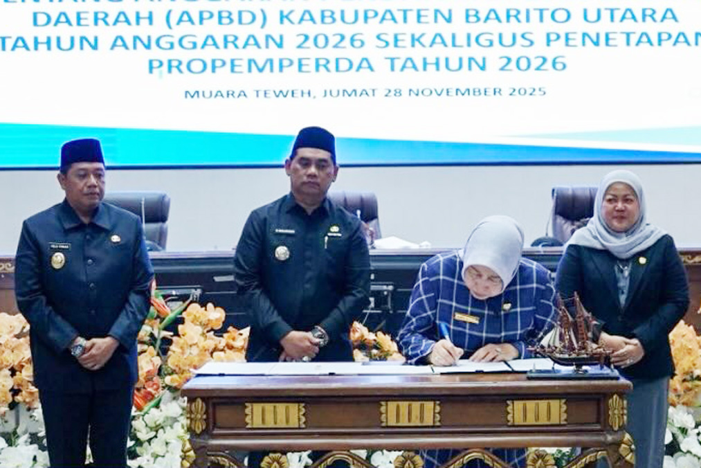 Muara Teweh, detakkalteng.com – Bupati Barito Utara H. Shalahuddin menyampaikan pendapat akhir fraksi-fraksi pendukung dewan atas Rancangan Peraturan Daerah (Raperda) tentang Anggaran Pendapatan dan Belanja Daerah (APBD) Kabupaten Barito Utara Tahun Anggaran 2026 pada Rapat Paripurna IV Masa Sidang I Tahun 2025 yang dilaksanakan di Gedung Aula Rapat DPRD setempat, Jumat (28/11/2025).