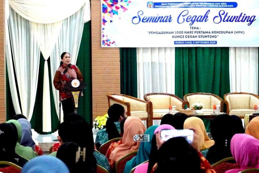 Puruk Cahu, detakkalteng.com – Pemerintah Kabupaten Murung Raya (Mura) melalui Dinas Pemberdayaan Perempuan dan Perlindungan Anak, Pengendalian Penduduk dan Keluarga Berencana (DP3A DALDUKKB) menggelar seminar pengasuhan 1000 HPK (Hari Pertama Kehidupan) dalam Kunci Cegah Stunting di Aula Rumah Jabatan (Rujab) Bupati setempat, Senin (8/9/2025).