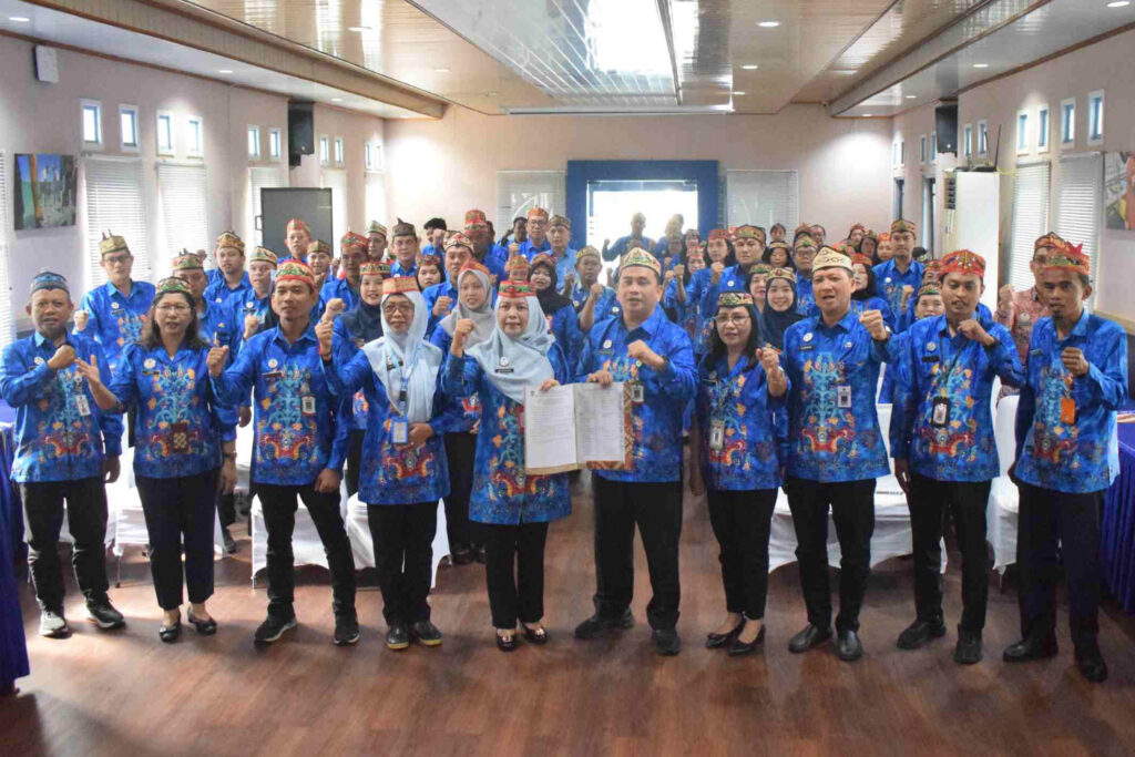 Foto bersama usai Penandatanganan Komitmen Bersama Penerapan Core Values ASN BerAKHLAK. (foto : Dislutkan)