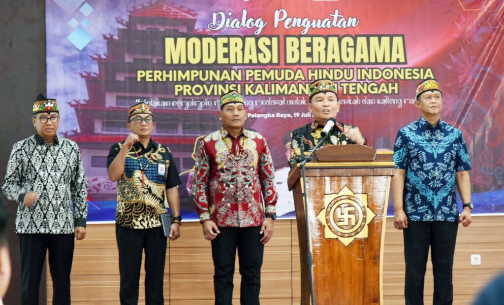 Palangka Raya, detakkalteng.com – Gubernur Agustiar Sabran membuka secara resmi Dialog Penguatan Moderasi Beragama Perhimpunan Pemuda Hindu Indonesia Provinsi Kalimantan Tengah (Kalteng) Tahun 2025 di Auditorium Hindu Kaharingan Center, Jalan Tambun Bungai Palangka Raya, Sabtu (19/07/2025).