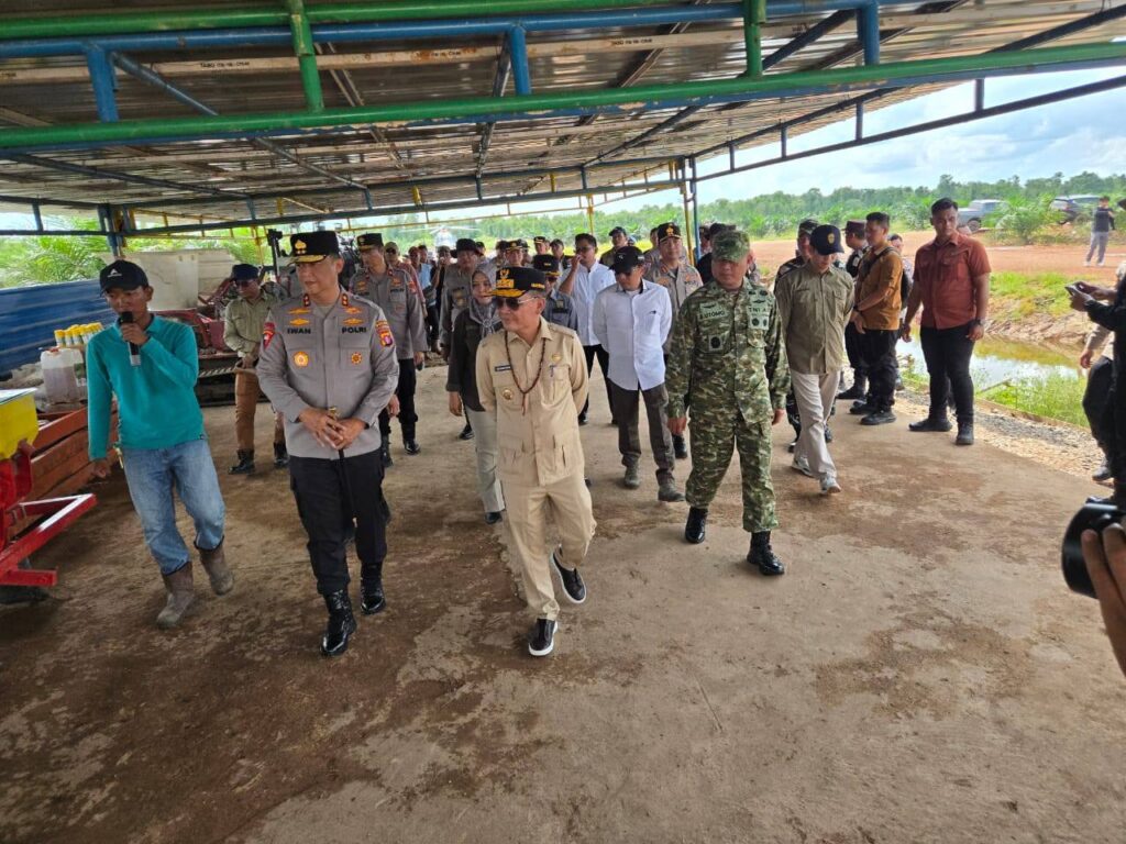 Gubernur Agustiar Sabran bersama Kapolda Kalteng Irjen Pol Iwan Kurniawan dan jajaran mengikuti tanam serentak ini dari area PT Menteng Kencana Mas di Desa Tahai Baru, Kecamatan Maliku, Kabupaten Pulang Pisau (Pulpis).