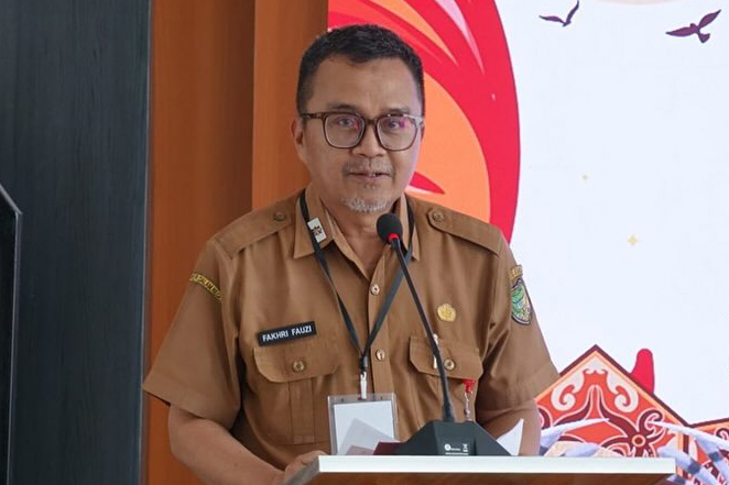 Kepala Dinas Kearsipan dan Perpustakaan Kabupaten Barito Utara, H. Fakhri Fauzi saat menyampaikan laporannya