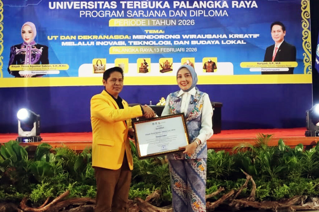 Palangka Raya, detakkalteng.com – Ketua Dekranasda Provinsi Kalimantan Tengah (Kalteng) Aisyah Thisia Agustiar Sabran, menghadiri sekaligus menjadi narasumber pada Seminar Akademik Universitas Terbuka (UT) Palangka Raya Tahun 2026 yang diselenggarakan di GPU Tambun Bungai, Jumat (13/2/2026).