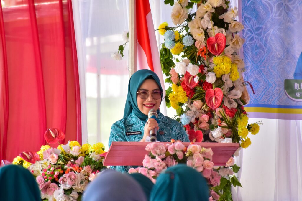 Ketua TP PKK Kabupaten Kapuas, Ibu Siti Saniah Wiyatno saat memberikan sambutan pada Peringatan Hari Kartini dan Silaturahmi Kader PKK di Kapuas Kuala
