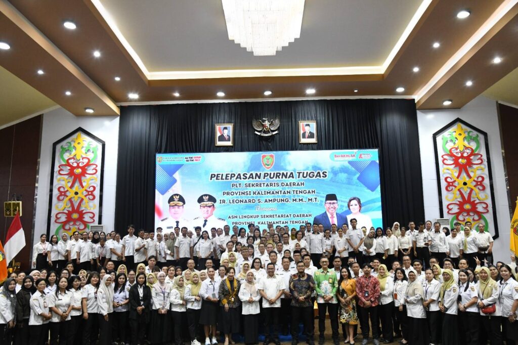 Palangka Raya, detakkalteng.com – Pelepasan Purna Tugas Pelaksana Tugas (Plt) Sekretaris Daerah (Sekda) Provinsi Kalimantan Tengah (Kalteng) Leonard S. Ampung bersama Aparatur Sipil Negara (ASN) lingkup Sekretariat Daerah Provinsi Kalteng digelar di Aula Jayang Tingang Lt. II, Kantor Gubernur, Rabu (1/04/2026).