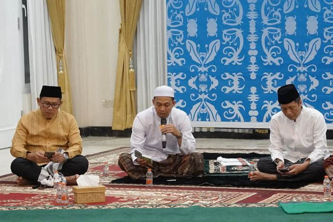 Muara Teweh, detakkalteng.com – Dalam rangka memperingati 7 hari wafatnya ayahanda tercinta, Almarhum Hi. M. Amin R. Gunawan Bin Muhammad Husin, Penjabat (Pj.) Bupati Barito Utara, Indra Gunawan, S.E., M.P.A., bersama keluarga besarnya menggelar Yasin dan Tahlil, bertempat di Rumah Jabatan Bupati Barito Utara, Selasa (7/10/2025) sore.