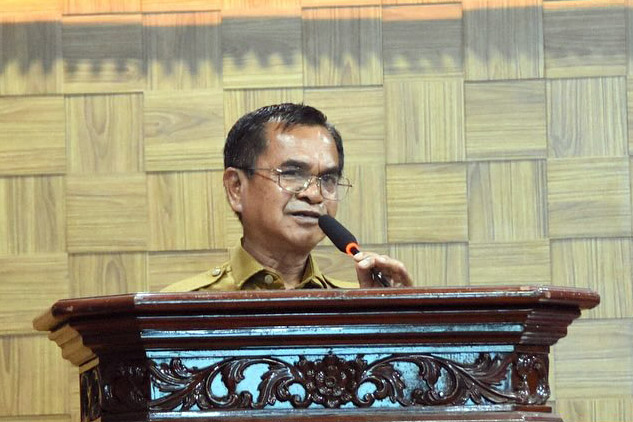 Kepala Dinas Dalduk KB P3A Kabupaten Barito Utara, Silas Patiung saat menyampaikan laporannya.