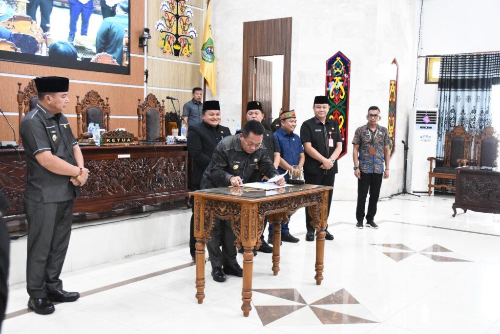 Bupati Kapuas HM Wiyatno dalam sambutannya menyampaikan ucapan terima kasih dan apresiasi kepada seluruh Fraksi pendukung dewan yang telah menyampaikan pendapat akhirnya serta menyetujui Rancangan Peraturan Daerah tentang Pertanggungjawaban APBD TA. 2024.