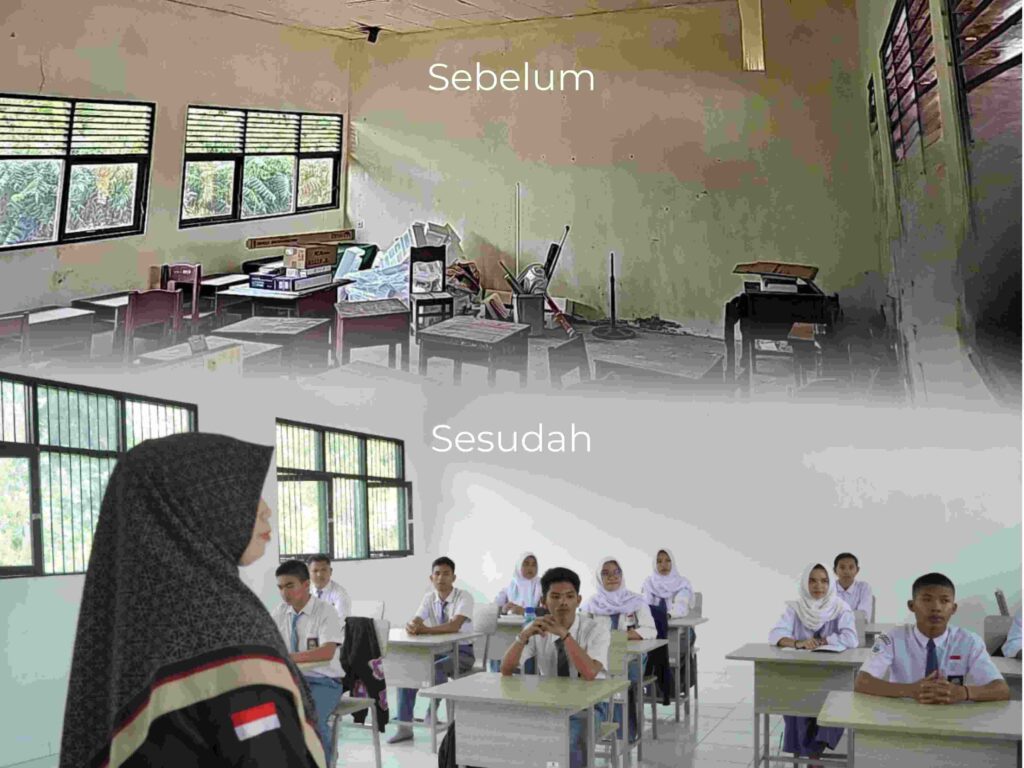 “Sekarang sudah jauh lebih nyaman, tidak ada bolong-bolong lagi dan tidak khawatir kebocoran saat hujan. Kami benar-benar bisa belajar dengan tenang,” tuturnya. Indah mengaku revitalisasi membuat dirinya dan teman-teman merasa lebih terbantu dan semakin bersemangat dalam mengikuti kegiatan belajar mengajar.