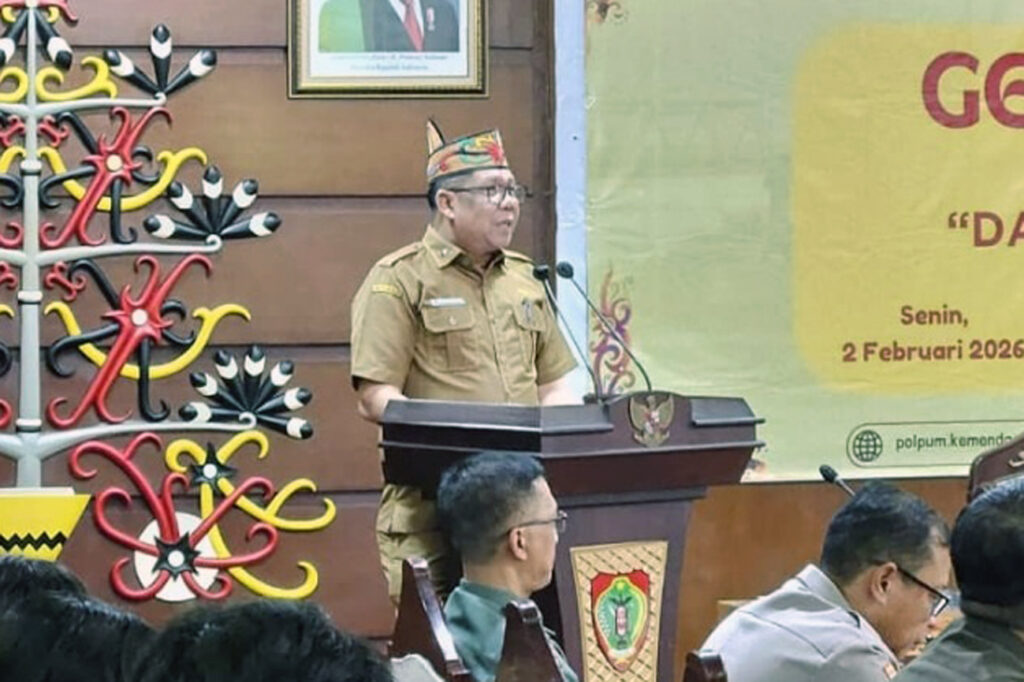 Staf Ahli Gubernur Bidang Pemerintahan, Hukum, dan Politik Darliansyah saat memberikan sambutan pada kegiatan Gema Pancasila Tahun 2026 dengan tema “Dari Nilai ke Aksi Nyata” yang berlangsung di Aula Eka Hapakat Lantai III Kantor Gubernur Kalimantan Tengah, Senin (2/2/2026). (foto : Ist)