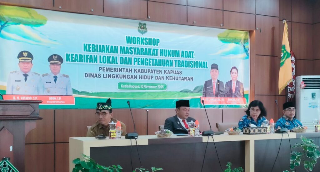 Kuala Kapuas, detakkalteng.com – Pemerintah Kabupaten Kapuas menggelar kegiatan Workshop Kebijakan Masyarakat Hukum Adat, Kearifan Lokal dan Pengetahuan Tradisional Tahun 2025, yang berlangsung di Aula Bapperida setempat, Senin (10/11/2025).