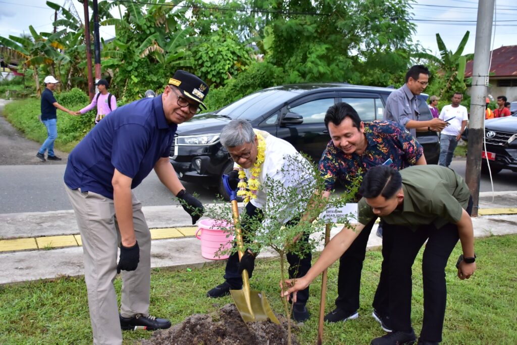 Pj Bupati Kapuas H Darliansjah mendampingi Menteri Lingkungan Hidup yang diwakili Deputi Pengelolaan Sampah Limbah Bahan Berbahaya dan Beracun Ade Palguna Ruteka melaksanakan penanaman pohon secara simbolis, Rabu (29/1/2025).