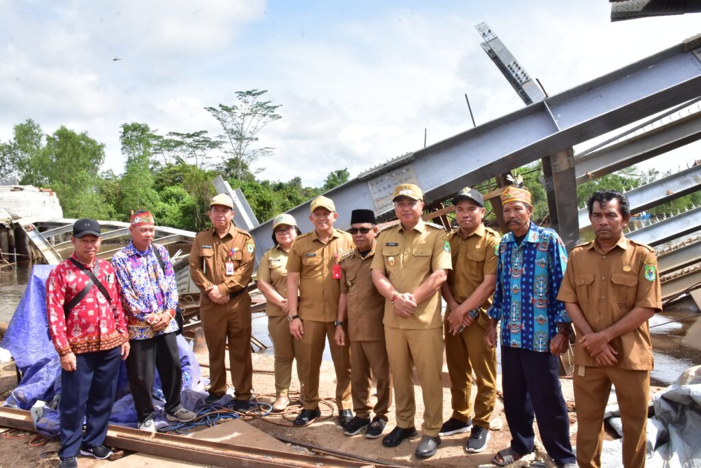 Wakil Bupati Kapuas Dodo saat melakukan peninjauan jembatan ambruk yang berlokasi di Terusan Raya Kecamatan Bataguh, Kabupaten Kapuas, Senin (24/02/2025) pagi.