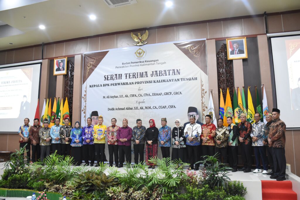 Wakil Bupati Kapuas Dodo saat berfoto bersama pada kegiatan Serah Terima Jabatan (Sertijab) Kepala Badan Pemeriksaan Keuangan Republik Indonesia (BPK RI) Perwakilan Provinsi Kalimantan Tengah bertempat di Auditorium BPK RI Perwakilan Provinsi Kalimantan Tengah, Kamis (10/4/2025)